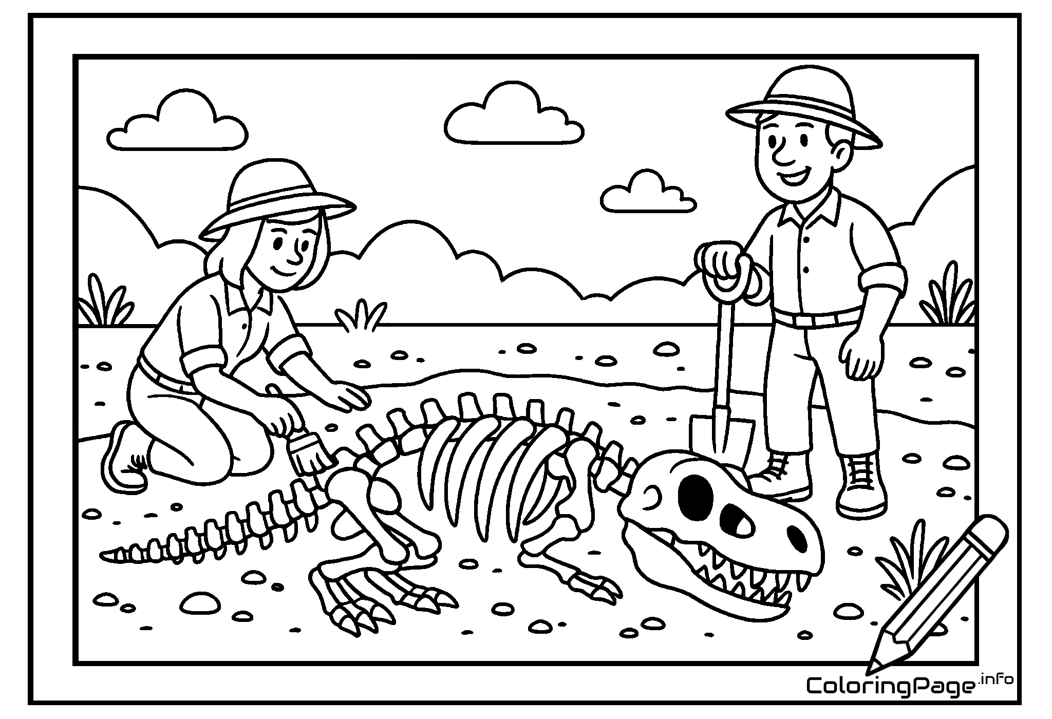 Archaeologists and a Dinosaur Skeleton Online coloring