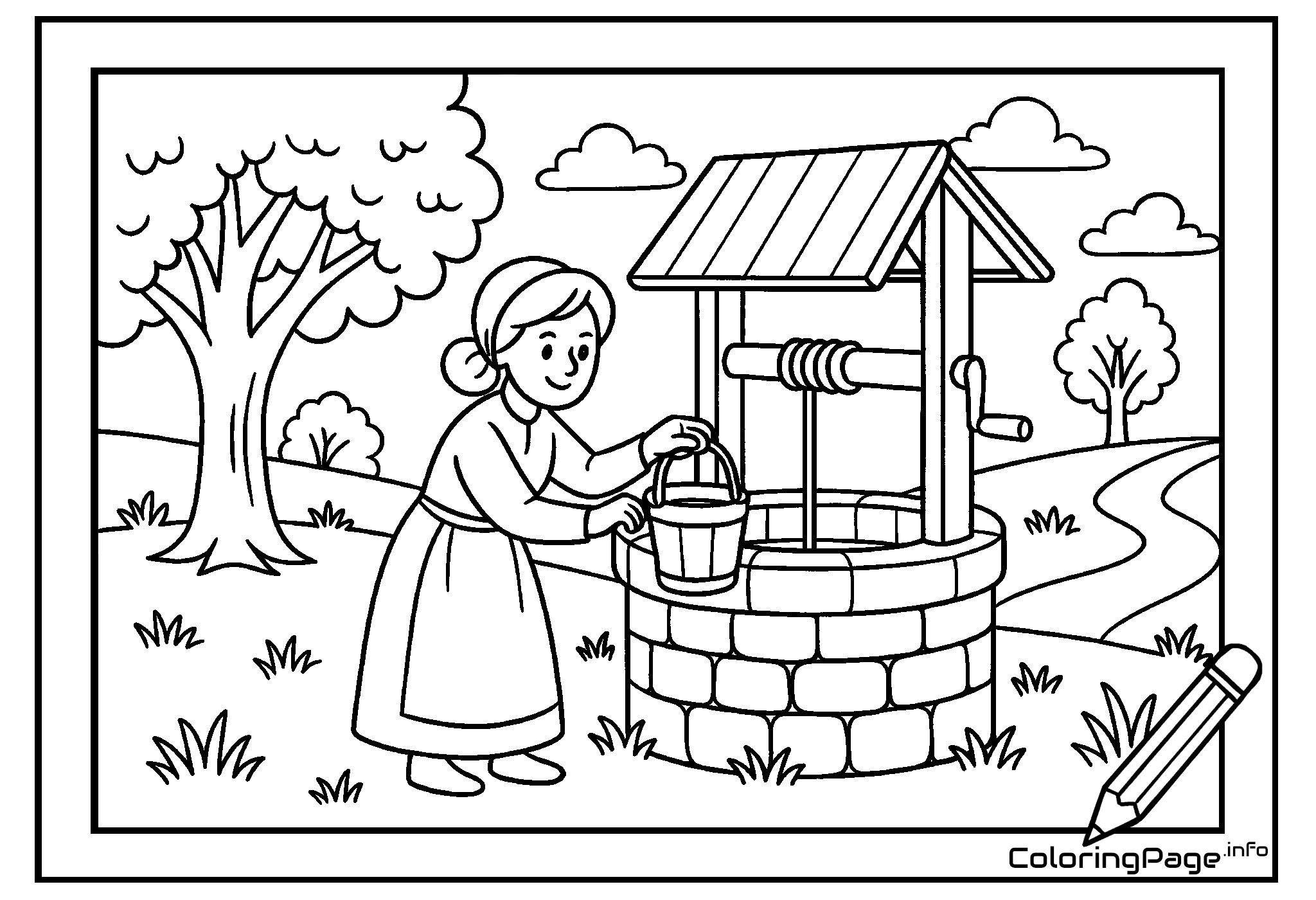 The Hen coloring page shows a friendly hen in a rural setting. The simple form makes it an ideal printable coloring page and online coloring page for younger children. Coloring a hen develops imagination and creativity and lets kids create their own colorful compositions.