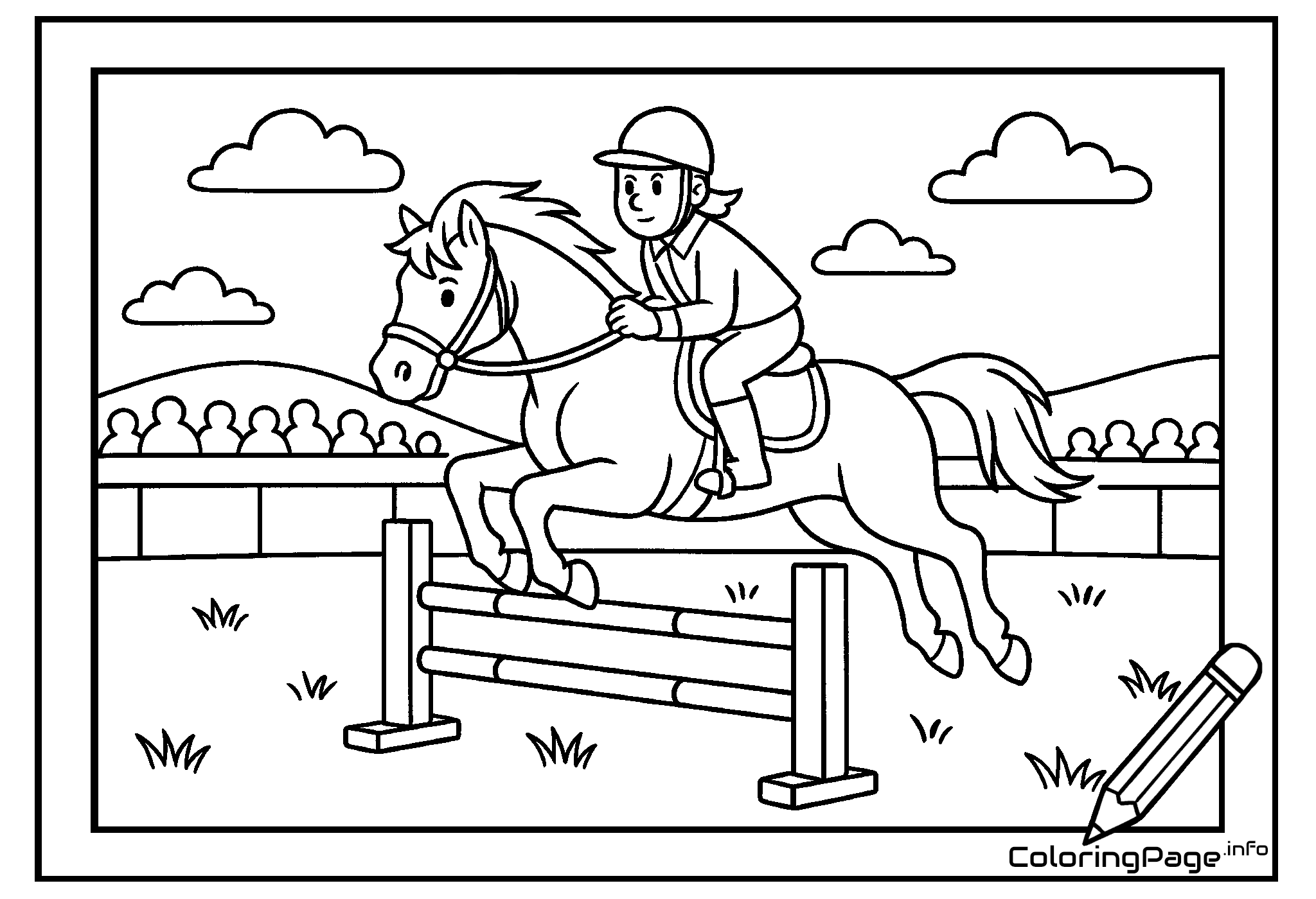 Long Jump coloring page shows an athletics moment—speed, takeoff, and effort. A sporty printable page for track-and-field fans—also available online.