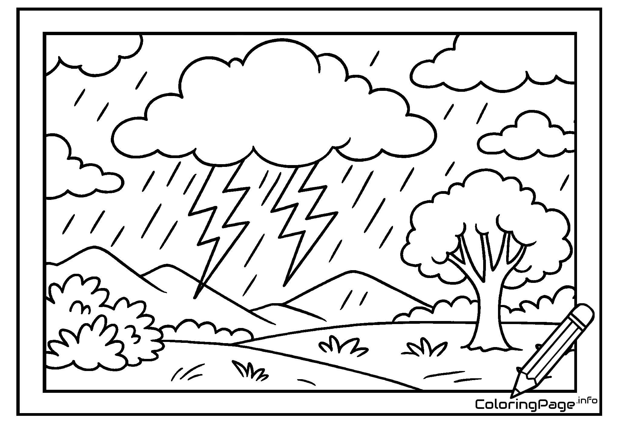 The Tornado coloring page shows a swirling funnel cloud—a powerful weather phenomenon captured in a dynamic scene. It’s an ideal printable coloring page for children fascinated by nature and extreme weather. The online Tornado coloring page is exciting, full of movement, and perfect for bold sky colors.