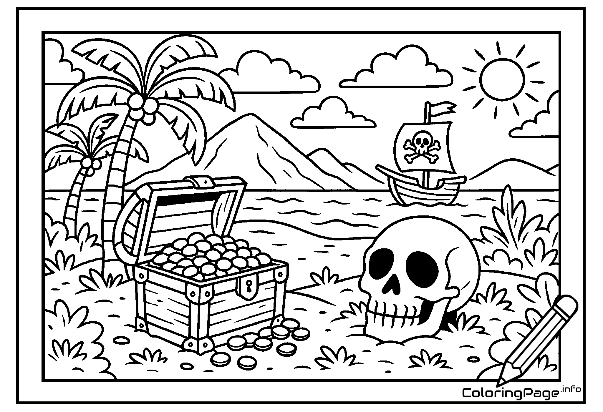 Printable coloring page Treasure Chest on the Island