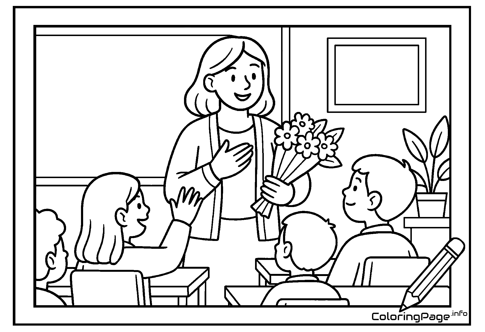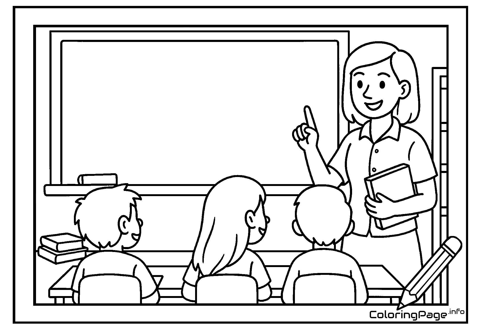 Printable coloring page Female Teacher at the Board